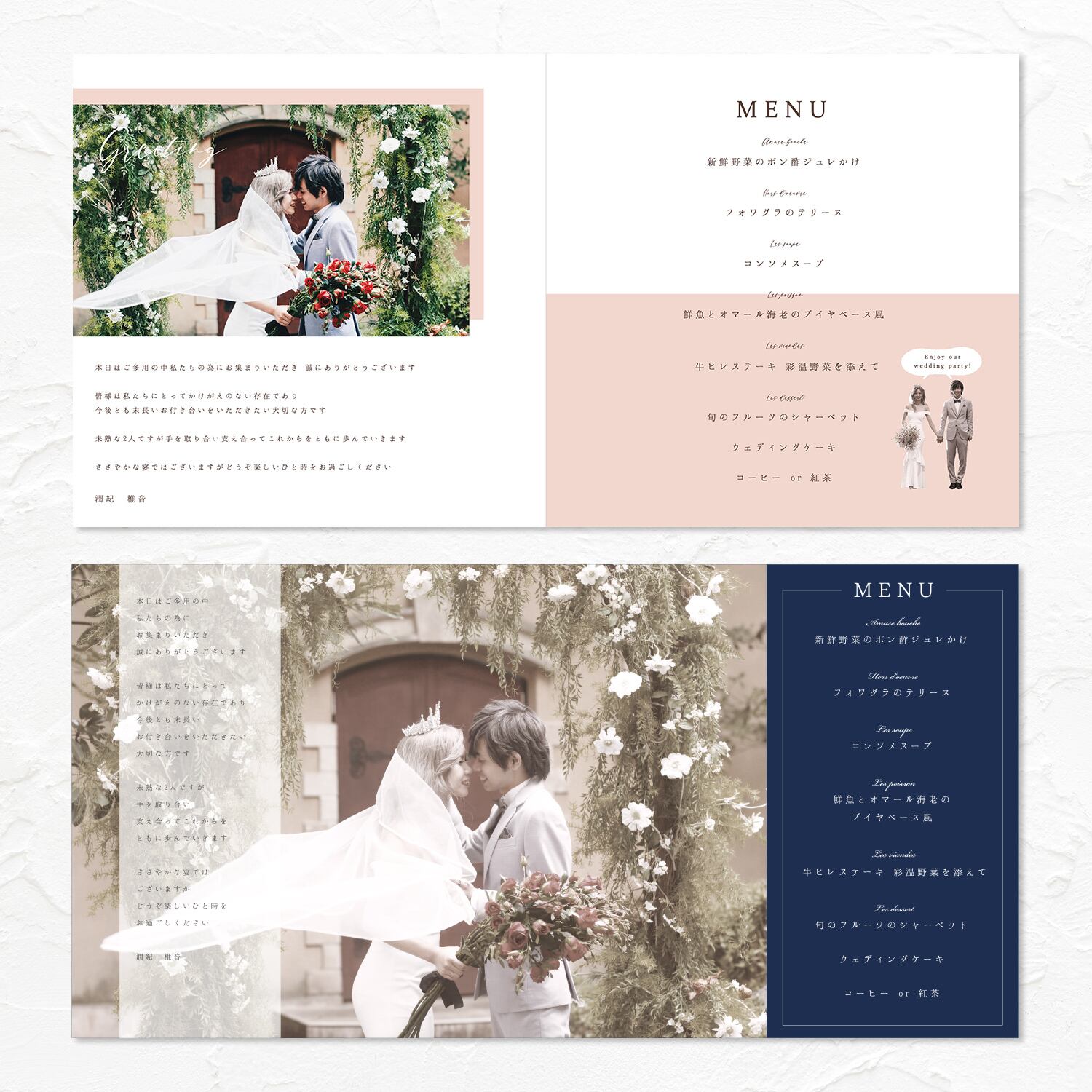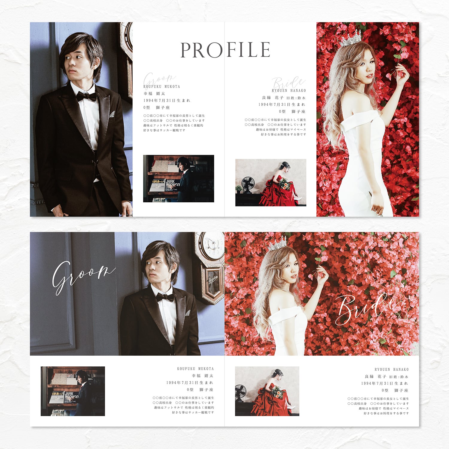 ※デザインが12Pのものをご希望で、ご購入は8Pご希望の方は、片面4ページ分を削除し、8Pに変更することも可能です。ただ、見開きでまたいでデザインしてあるページについては、どちらか片方のページのみを削除することはできないので、お気をつけください。