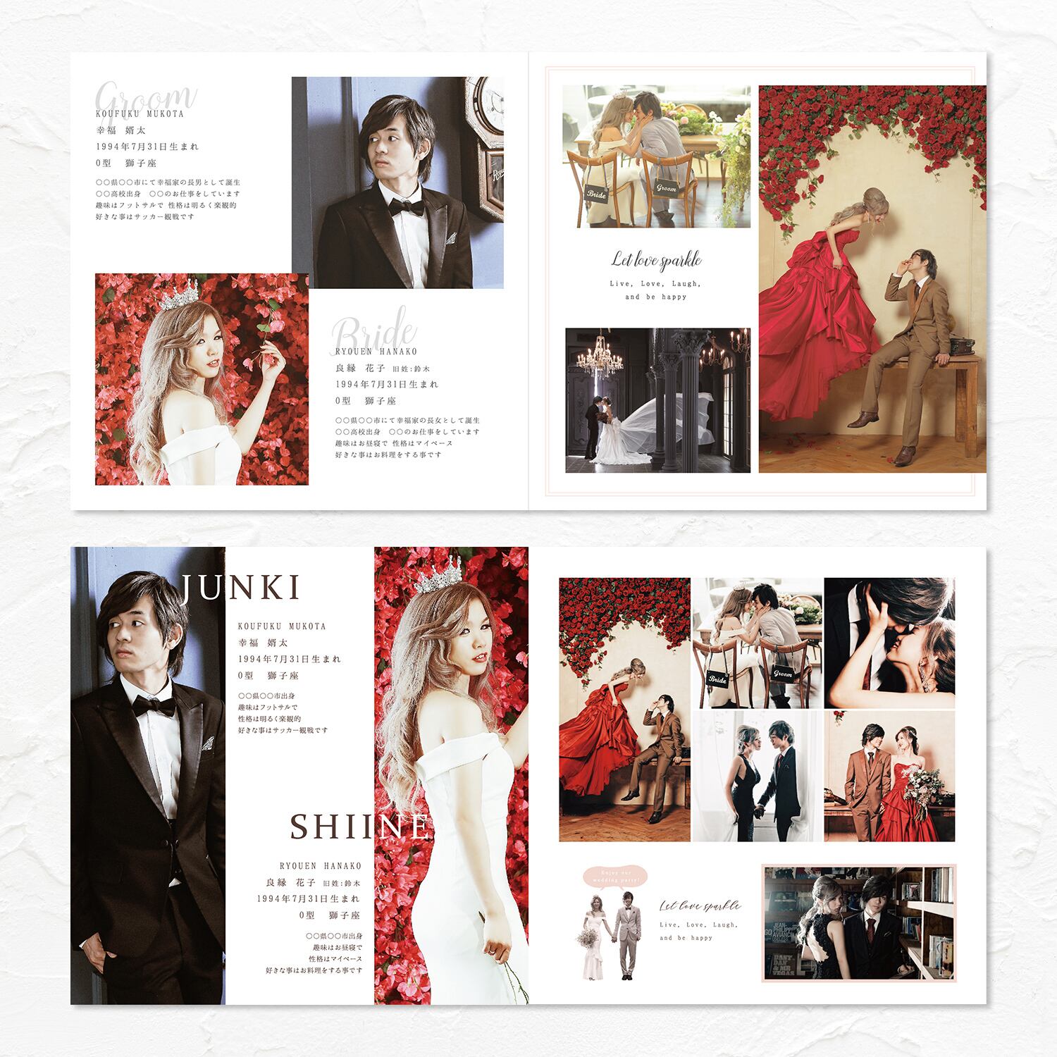 ※デザインが12Pのものをご希望で、ご購入は8Pご希望の方は、片面4ページ分を削除し、8Pに変更することも可能です。ただ、見開きでまたいでデザインしてあるページについては、どちらか片方のページのみを削除することはできないので、お気をつけください。